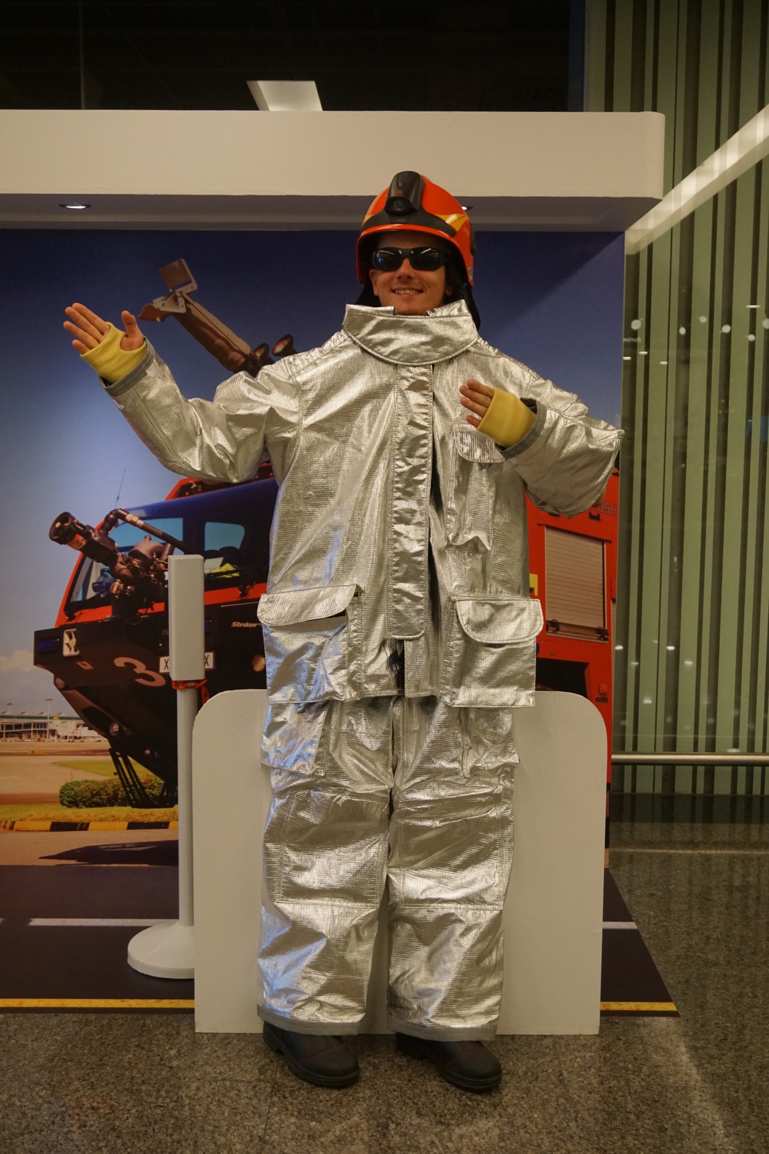 Im Flughafengebäude von Singapur schwelgte Stefan kurz in Kindheitserinnerungen. Einmal Feuerwehrmann sein … !