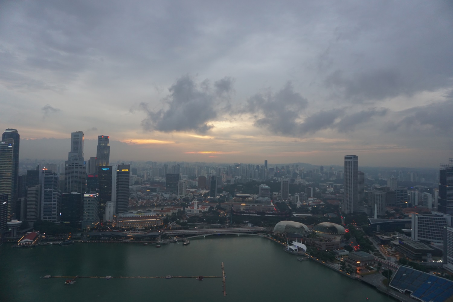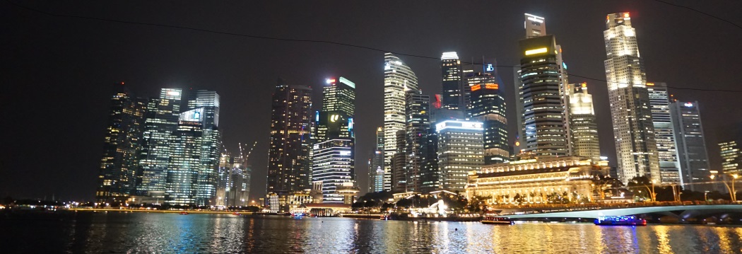 Die Skyline von Singapur ist sehr schön. Kurz vorher gab es ein heftiges Gewitter, dass hat die Sicht an diesem eher wolkenreichen Tag verbessert.